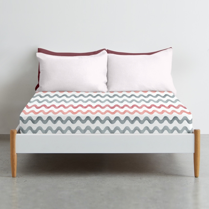 Півтораспальне простирадло на резинці міцно тримається на матраці, закриваючи його бічні стінки, фіксуючи резинкою по всьому периметру. У простирадла COSAS немає складок, воно не зісковзує при використанні.