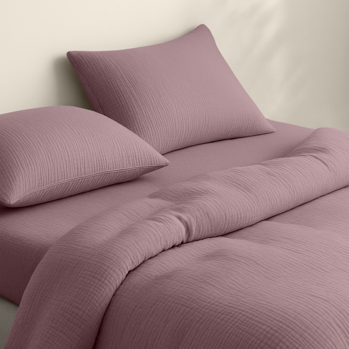 Полуторне простирадло на резинці COSAS 140×200×20 см виготовлене зі 100% натурального 4-шарового мусліну — м’якої, дихаючої та делікатної тканини, що створює відчуття природної легкості та затишку щодня.