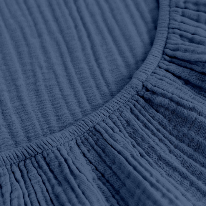 Полуторне простирадло на резинці COSAS 140×200×20 см виготовлене зі 100% натурального 4-шарового мусліну — м’якої, дихаючої та делікатної тканини, що створює відчуття природної легкості та затишку щодня.