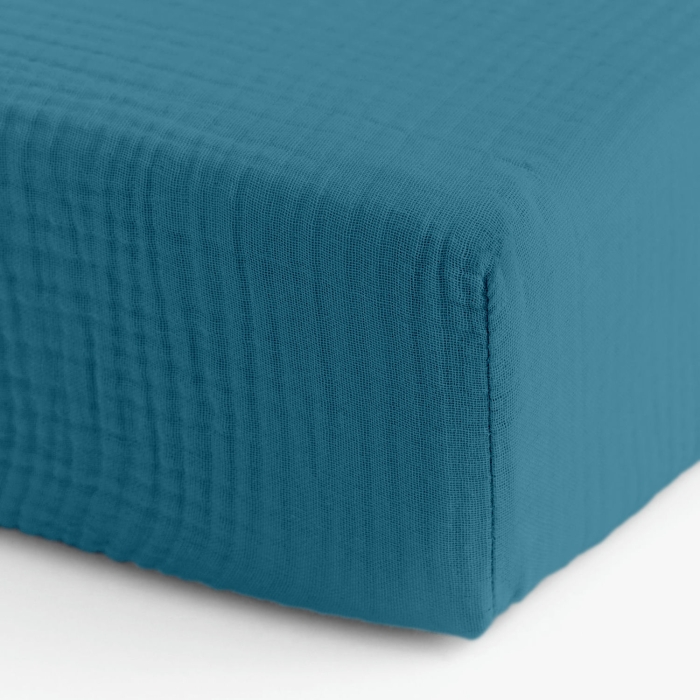 Полуторне простирадло на резинці COSAS 140×200×20 см виготовлене зі 100% натурального 4-шарового мусліну — м’якої, дихаючої та делікатної тканини, що створює відчуття природної легкості та затишку щодня.