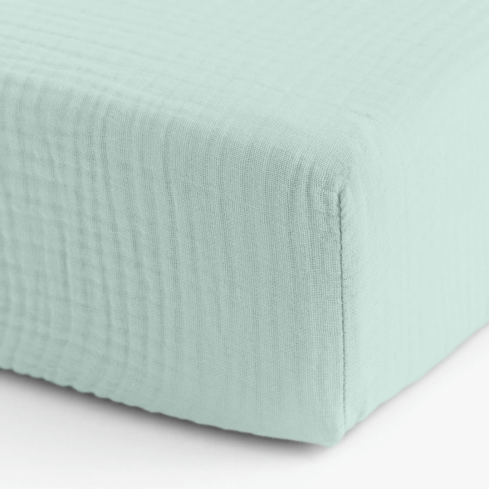 Полуторне простирадло на резинці COSAS 140×200×20 см виготовлене зі 100% натурального 4-шарового мусліну — м’якої, дихаючої та делікатної тканини, що створює відчуття природної легкості та затишку щодня.