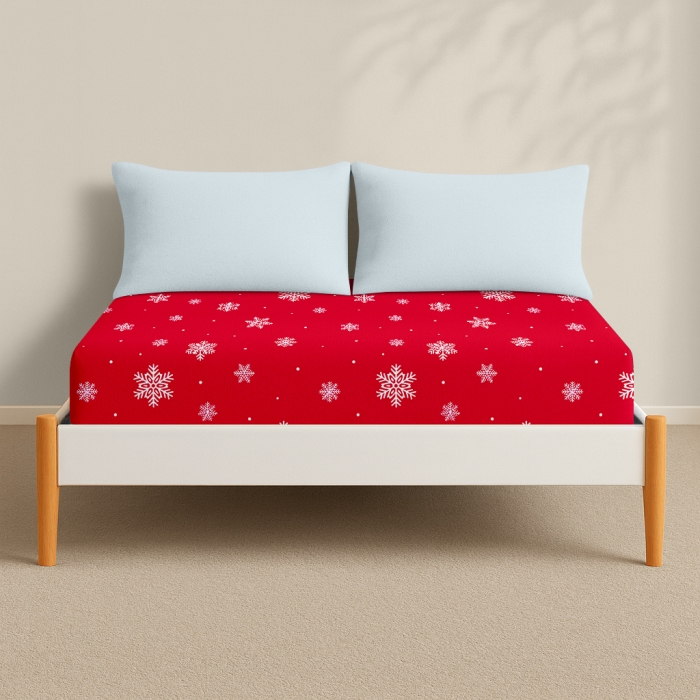 Простирадло на резинці фланель 200х220 SNOWFLAKES CRANBERRY