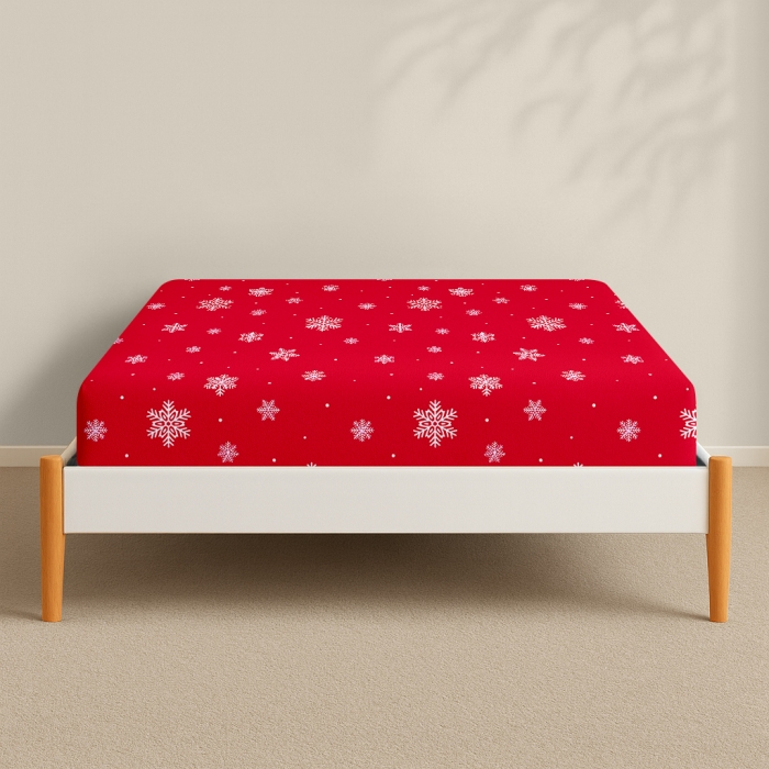 Простирадло на резинці фланель 200х220х30 SNOWFLAKES CRANBERRY