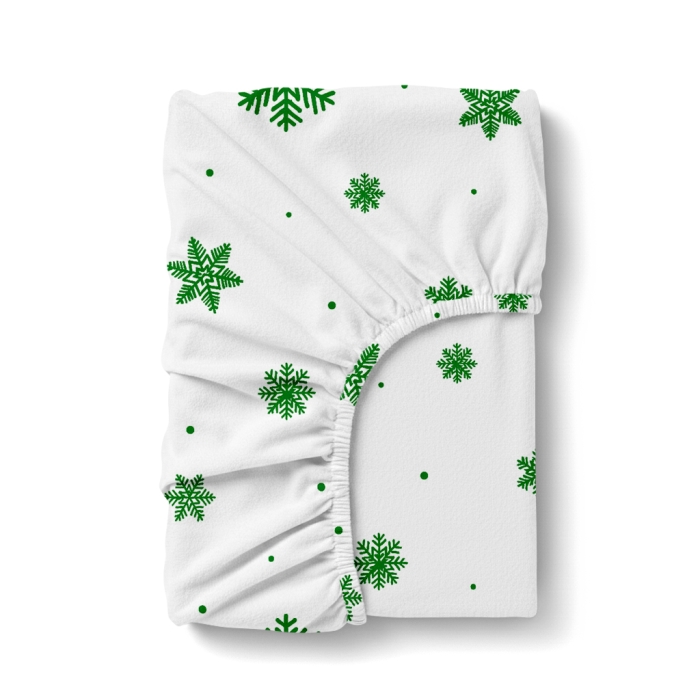 Простирадло на резинці фланель 200х220х30 SNOWFLAKES EVERGREEN