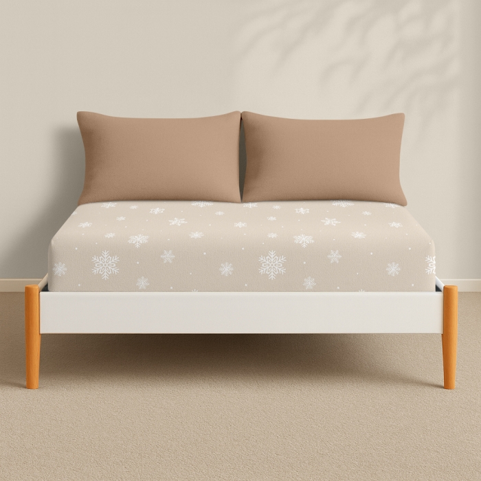 Простирадло на резинці фланель 200х220х30 SNOWFLAKES LATTE