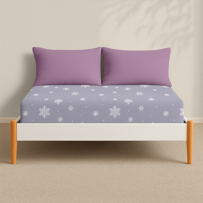 Простирадло на резинці фланель 200х220х30 SNOWFLAKES SILVER