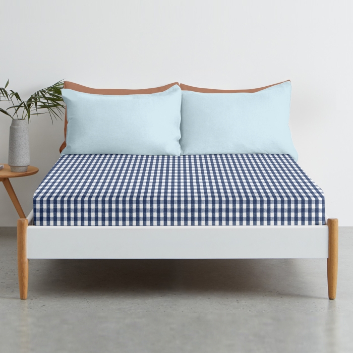 Теги: , , Синій, Геометрія, Ранфорс, 80х200х20 см, Простирадло на резинці 80х200 NAVY CHECK