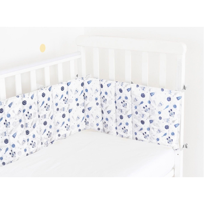 Schnellsuche , космос, комета, ракета, планета, Білий, Космос, Ранфорс, 30х120 см, Бортики в дитяче ліжечко 30x120 SPACE