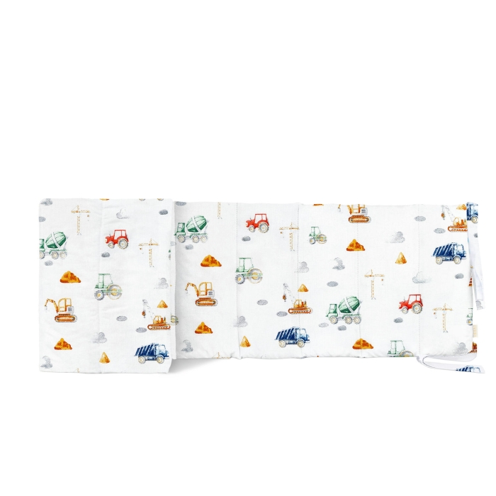 Schnellsuche , машина, машини, будівництво, будівельні машини, камаз, трактор, Білий, Автомобіль, Ранфорс, 30х120 см, Бортики в дитяче ліжечко 30x120 TECHNO CARS