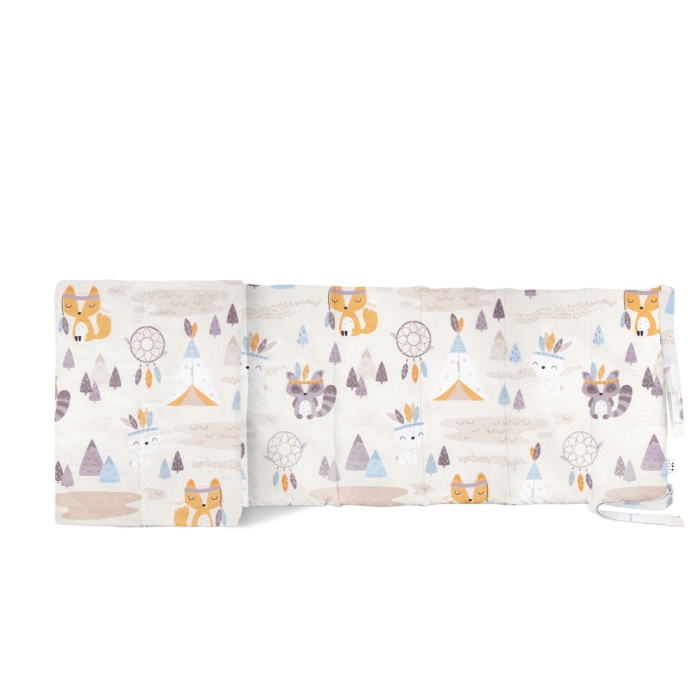 Schnellsuche , дерева, ліс, єнот, єноти, лисичка, лисички, індіанці, Бежевий, Тварини, Ранфорс, 30х60 см, Бортики в дитяче ліжечко 30x60 ANIMALS BEIGE