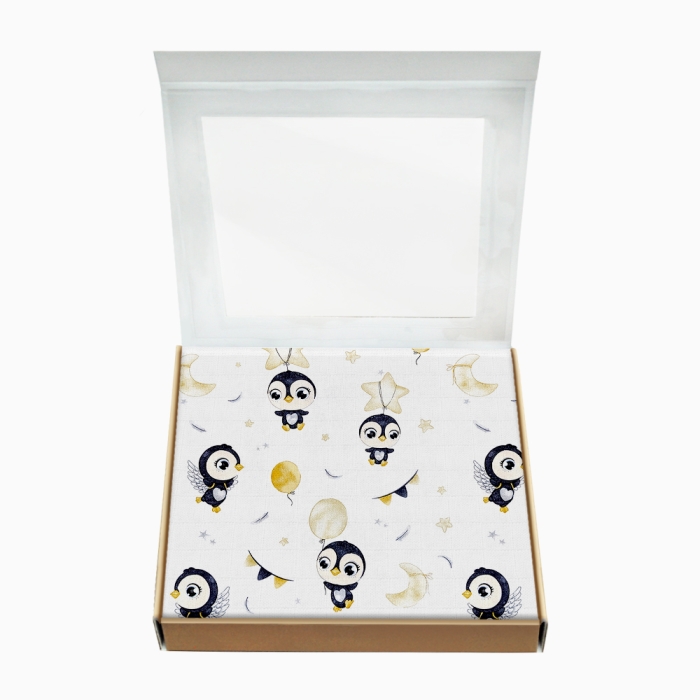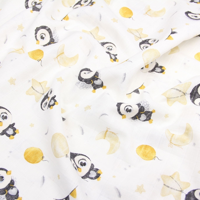 Schnellsuche , , Жовтий, Тварини, Муслін, 80х100 см, Пелюшка муслін 80x100 Penguins