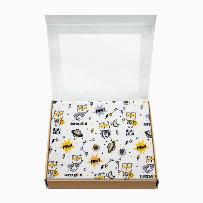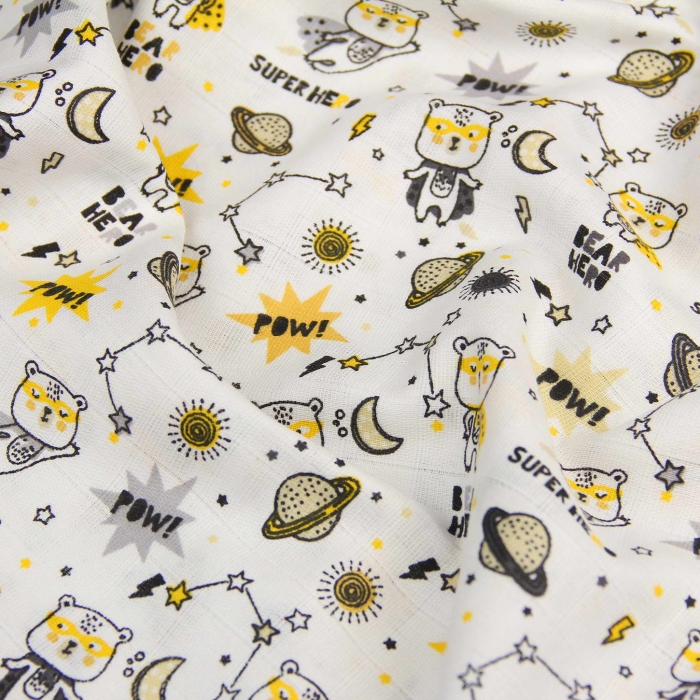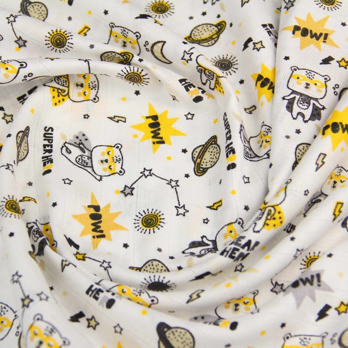 Schnellsuche , , Жовтий, Тварини, Муслін, 80х100 см, Пелюшка муслін 80x100 Superheroes