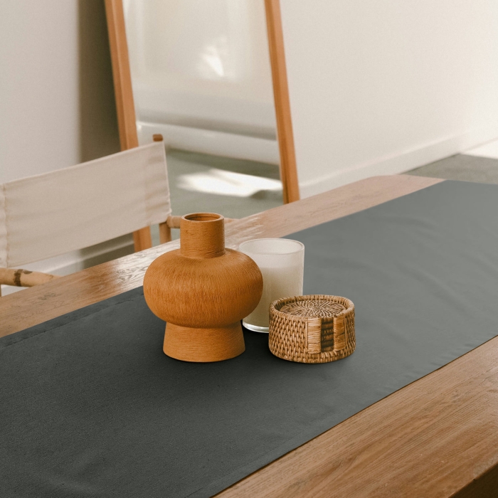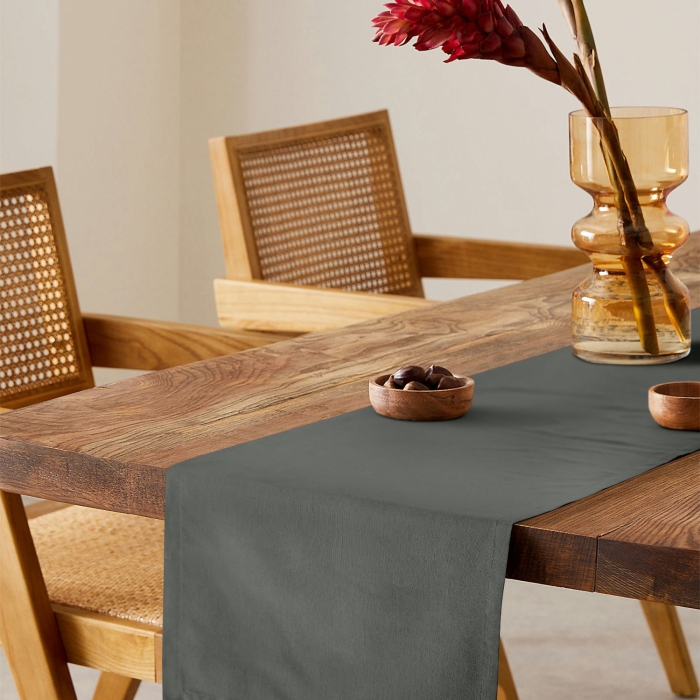 • Монохромний варіант: Створіть сучасний мінімалістичний вигляд, вибравши ранер і серветки в одному кольорі, але різних відтінків. Наприклад, світло-сірий ранер у поєднанні з темно-сірими серветками та підставками під тарілки.