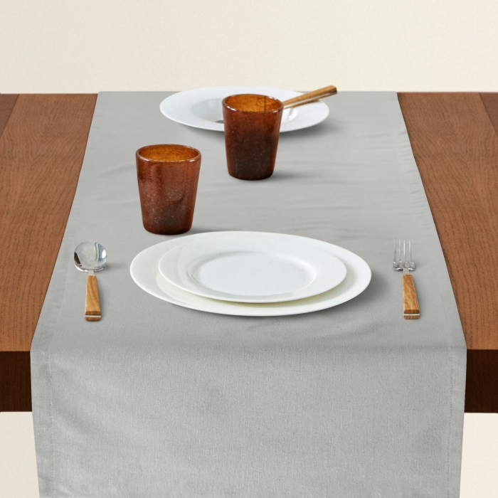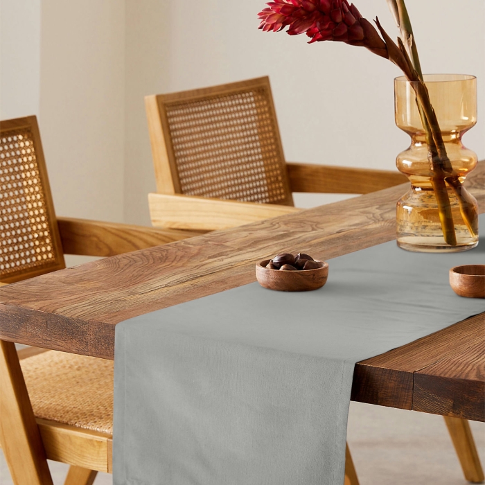 • Монохромний варіант: Створіть сучасний мінімалістичний вигляд, вибравши ранер і серветки в одному кольорі, але різних відтінків. Наприклад, світло-сірий ранер у поєднанні з темно-сірими серветками та підставками під тарілки.